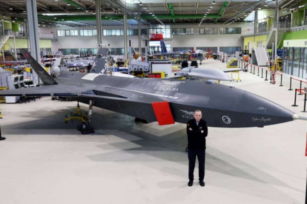 Özdemir Bayraktar Millî Teknoloji Merkezi’ni ziyaret eden Cumhurbaşkanı Erdoğan, milli ve özgün oalrak geliştirilen Bayraktar Kızılelma İnsansız Savaş Uçağı önünde çektirdiği hatıra fotoğrafını paylaştı.