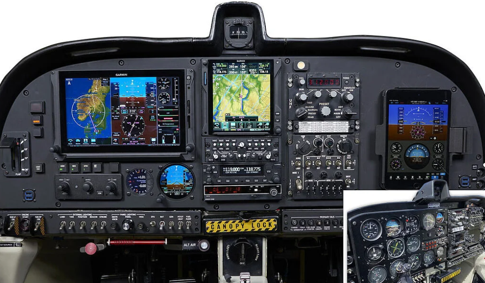 Uçağın kokpitindeki analog ekipman, uçuşla ilgili planlamanın ve ilgili veritabanlarının kablosuz olarak yüklenmesi seçeneğiyle birlikte dijital dokunmatik ekranlarla değiştirildi. Yeni sistem, irtifa ve hız dahil olmak üzere birincil uçuş verilerine gelişmiş bir genel bakış sunan bir Garmin G500 TXi ekrana sahip. Şirket ayrıca, uçağın birincil güç kaynağını kaybetmesi durumunda pille çalışan bir GI275 bekleme göstergesi kurdu.