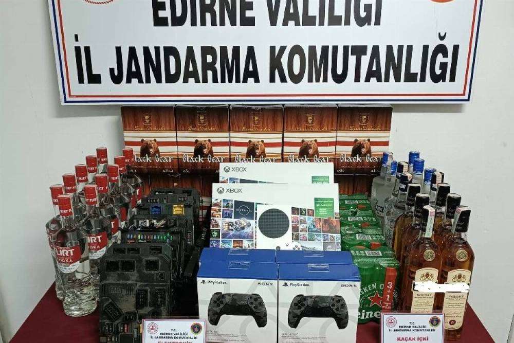 Edirne İl Jandarma Komutanlığı, sorumluluk bölgesinde kaçakçılıkla mücadeleye aralıksız devam ederken son operasyonda, gümrük kaçağı oyun konsolları, alkollü içkiler ve araç sigorta panelleri ele geçirildi.