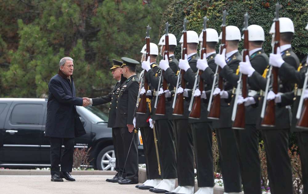 Törenin yapıldığı Millî Savunma Üniversitesi (MSÜ) Kara Harp Okulu (KHO) Kültür Sitesi'ne gelişinde Genelkurmay Başkanı Orgeneral Yaşar Güler ve MSÜ Rektörü Prof. Dr. Erhan Afyoncu tarafından karşılanan Bakan Akar, KHO öğrencilerinden oluşan Harbiyeli Tören Mangası'nı selamladı.