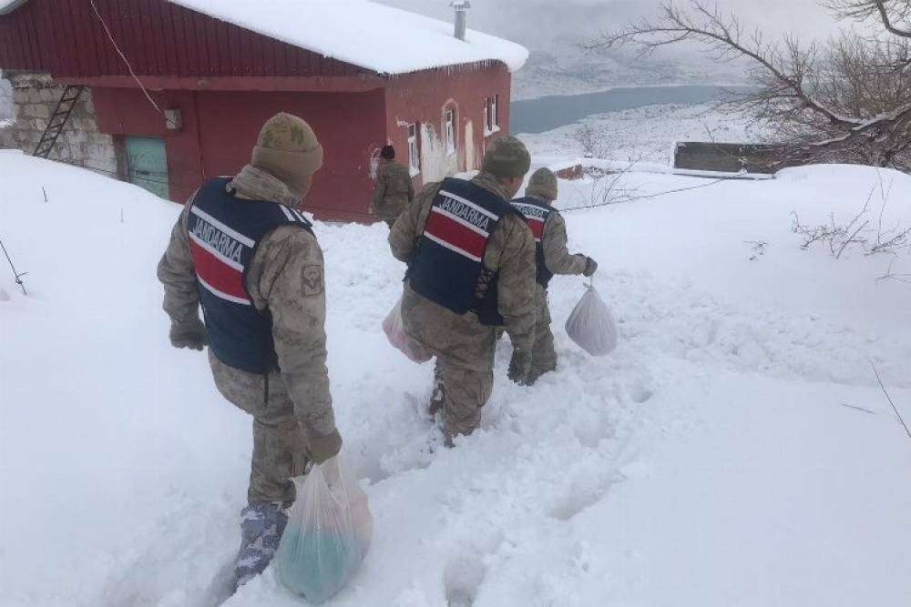 Odun koydukları yerin çöktüğünü ve aynı zamanda erzaklarının tükendiğin söyleyen vatandaşa İlçe Jandarma Komutanlı ekipleri yardım etti. Ekipker tarafından Y.Ç. ve ailesinin ihtiyaçları karşılanırke aynı zamanda kar altında kalan odunlarının bir kısmı kar altından çıkartılarak evin içerisine taşındı.
