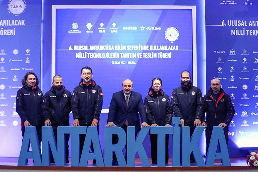 Bakan Varank, TÜBİTAK Başkanlık binasında gerçekleştirilen, “6. Ulusal Antarktika Bilim Seferinde Kullanılacak Milli Teknolojilerin Tanıtım ve Teslim Töreni”ne katıldı. Savunma sanayinden dijital teknolojilere, elektrikli araçlardan uzay çalışmalarına kadar farklı alanlarda büyük ve güçlü Türkiye’yi inşa etmek üzere çalıştıklarına vurgulayan Varank, kutup araştırmalarının da bu vizyonla yürüttükleri önemli faaliyetlerin arasında yer alığını kaydetti. 2017'den bu yana kıtaya beş bilim seferi düzenlediklerini anımsatan Varank, “Hedefimiz Antarktika Anlaşmalar sisteminde 'Danışman Ülke' statüsü kazanarak, Beyaz Kıta’da bayrağımızı dalgalandırmak ve kıtanın geleceğinde söz sahibi olmaktır.” şeklinde konuştu.
