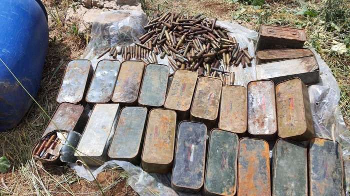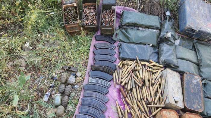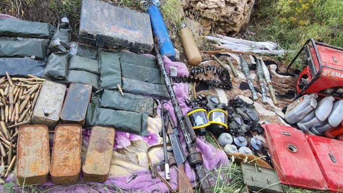 -1 adet AK-47 piyade tüfeği, -36 adet el bombası, -3 adet A/T RPG mühimmatı, -2 adet A/P RPG mühimmatı, -50 kg amonyum nitrat patlayıcı -2.100 adet 14.7 mm Doçka makineli tüfek mühimmatı, -1.500 adet 12.7 mm uçaksavar mühimmatı, -3.000 adet 7.62 mm PKMS makineli tüfek mühimmatı, -2.000 adet 7.62 mm AK-47 piyade tüfeği mühimmatı, -15 adet AK-47 piyade tüfeği şarjörü, -1 adet Doçka makineli tüfek namlusu, -1 adet PKMS makineli tüfek namlusu ve çok sayıda yaşam malzemesi.