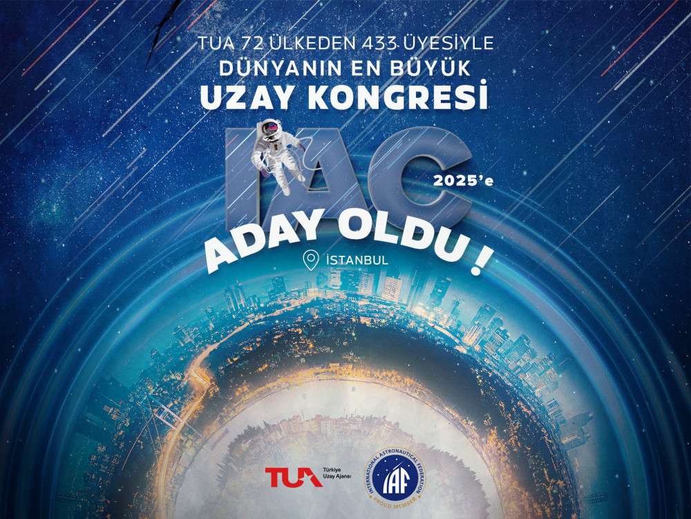 TUA'nın Twitter hesabından yapılan paylaşımda, "Dünyanın en büyük uzay kongresi IAC 2025 için adaylık başvurumuzu yaptık! Uluslararası uzay sanayi ekosistemini kıtaların ve kültürlerin birleştiği İstanbul'da ağırlamak için tüm gayretimizle çalışacağız!" ifadelerine yer verildi.